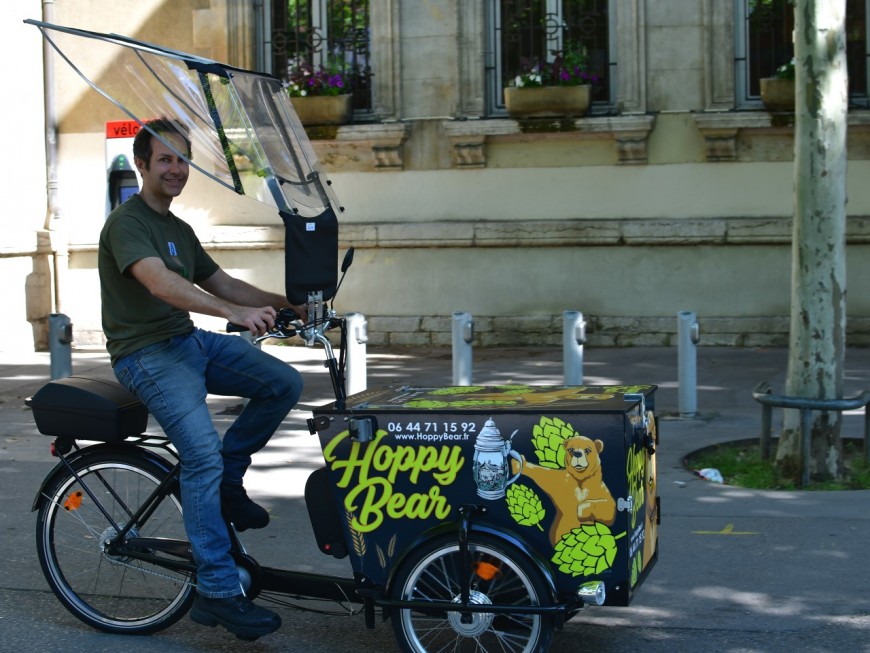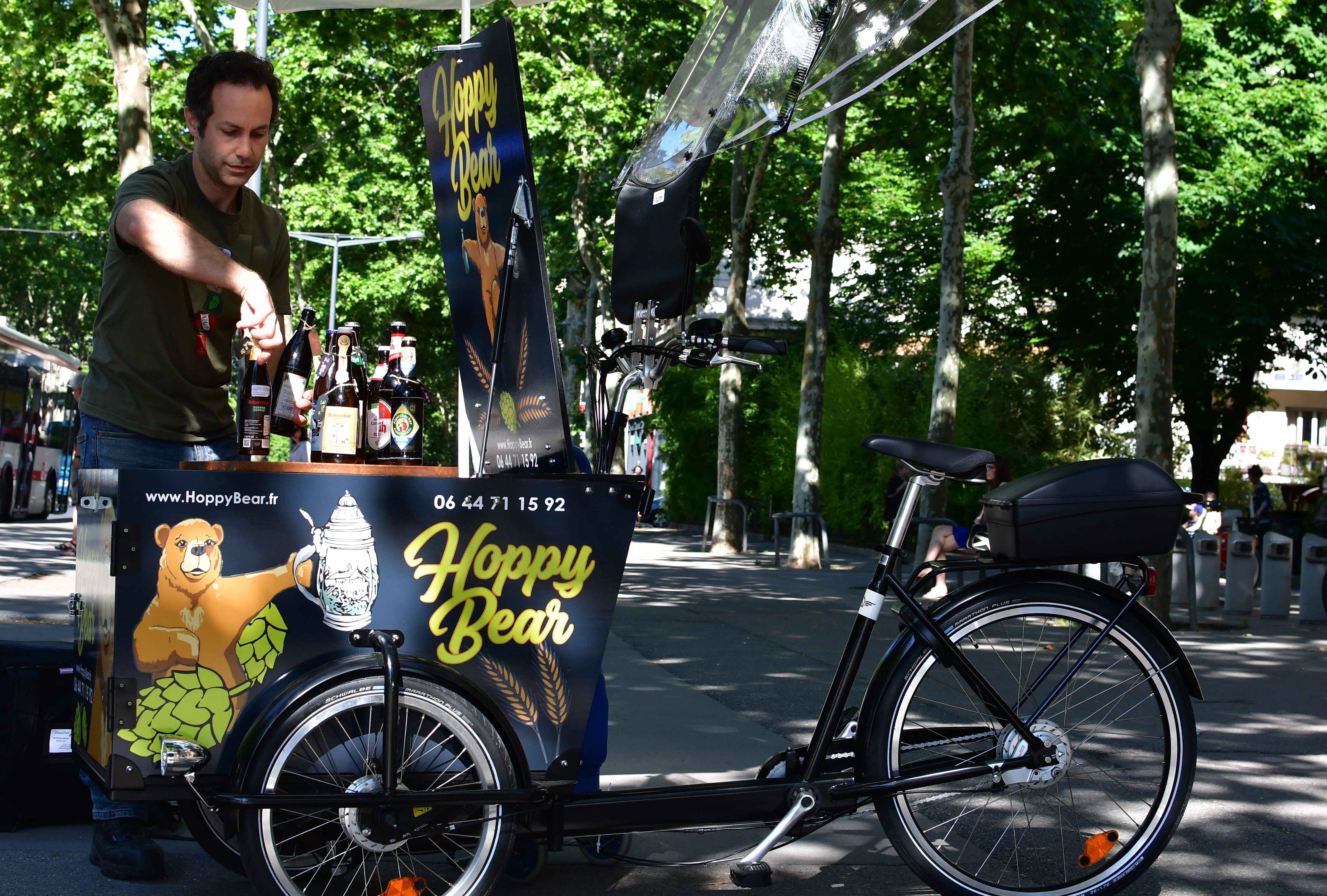 Douglas Kolozsvari est Californien d'origine hongroise. Avec son visage avenant, ce Lyonnais depuis 2009 vend des bières allemandes quasi introuvables sur le marché français, par sa marque Hoppy Bear : " Je suis un grand amateur de bières, surtout les allemandes parce qu'elles sont moins alcoolisées et plus naturelles que les belges. Mais quand je suis arrivé à Lyon, impossible d'en trouver. J'ai donc demandé à mon ami Phil, maître brasseur de bière en Allemagne, des conseils pour m'en procurer, il m'a dit que je n'avais qu'à en vendre en rigolant, du coup je me suis lancé", explique le Californien. "Je suis principalement dans le quartier de la Croix-Rousse et des pentes parce que c'est là que j'habite et je l'adore. J'ai envie d'offrir des produits de qualité à mes voisins".