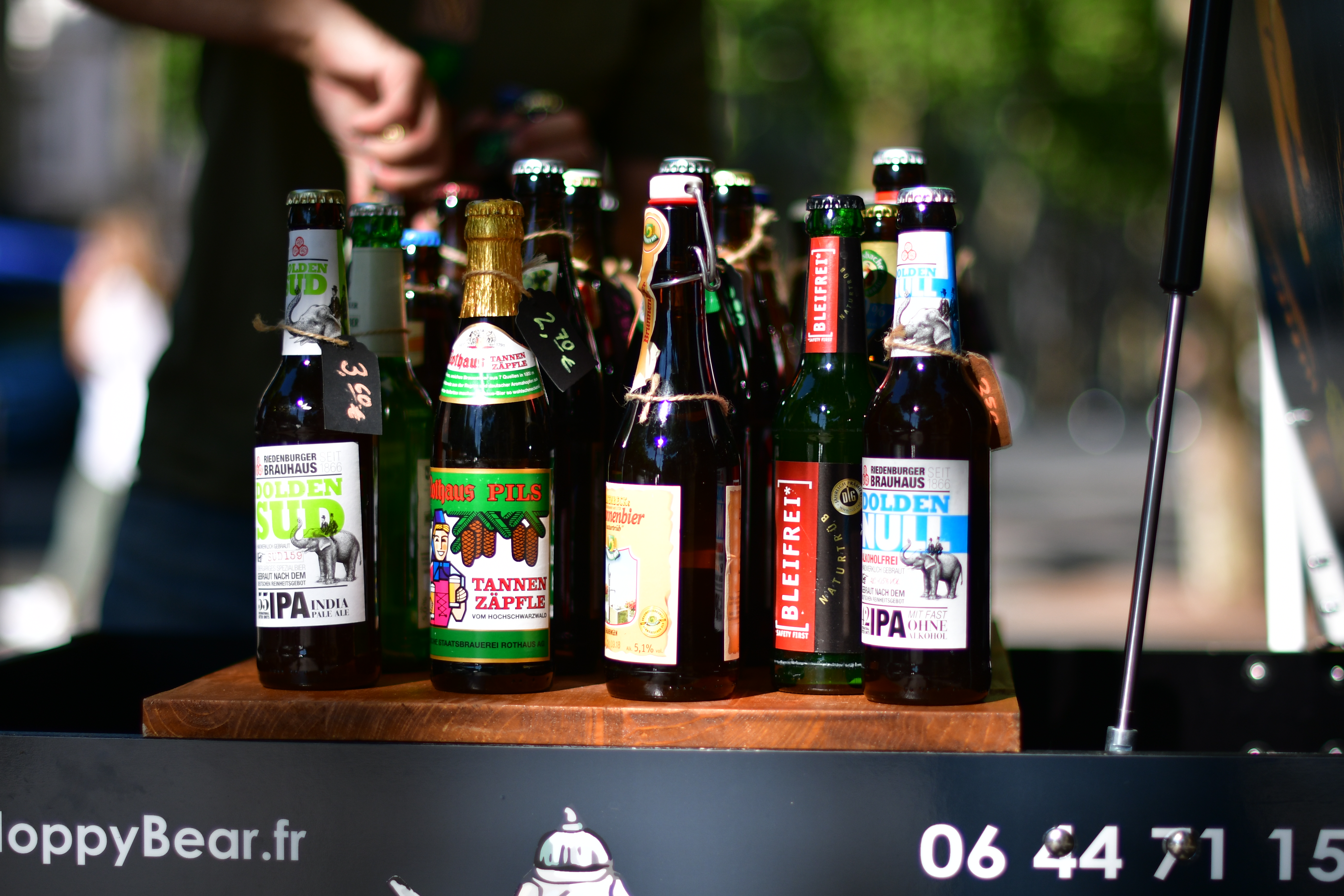 Sur son étalage il y a près d'une trentaine de bières différentes, allant des blondes, des blanches, des ambrées aux IPA (India Pale Ale, des bières créées au XVIIe siècle pour l'exportation. Elles contiennent plus d'alcool et de houblon que les autres bières pour pouvoir être consommables après de longs voyages). "J'ai aussi neuf bières sans alcool dont je suis plutôt fier. Je les choisis en fonction de mes goûts. Je les teste avec mon ami brasseur et ensuite on décide tous les deux si oui ou non on les vend", souligne Douglas.