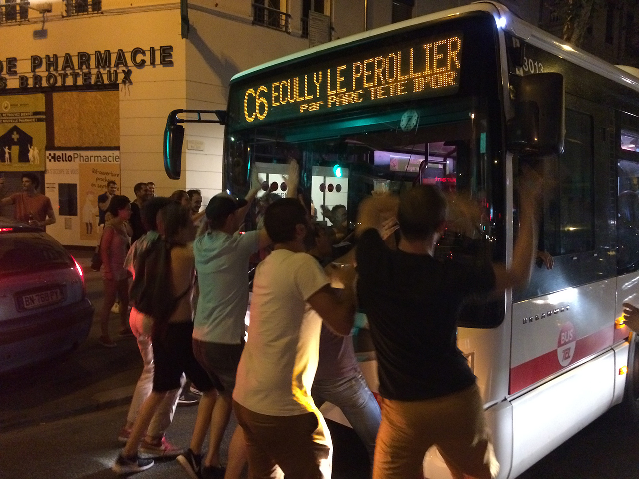 Même sans écran géant ni fan zone, Lyon est capable de faire la fête. Reste à savoir si la mairie cèdera à la pression populaire pour permettre au plus grand nombre de vivre l'évènement historique depuis la place Bellecour dimanche.