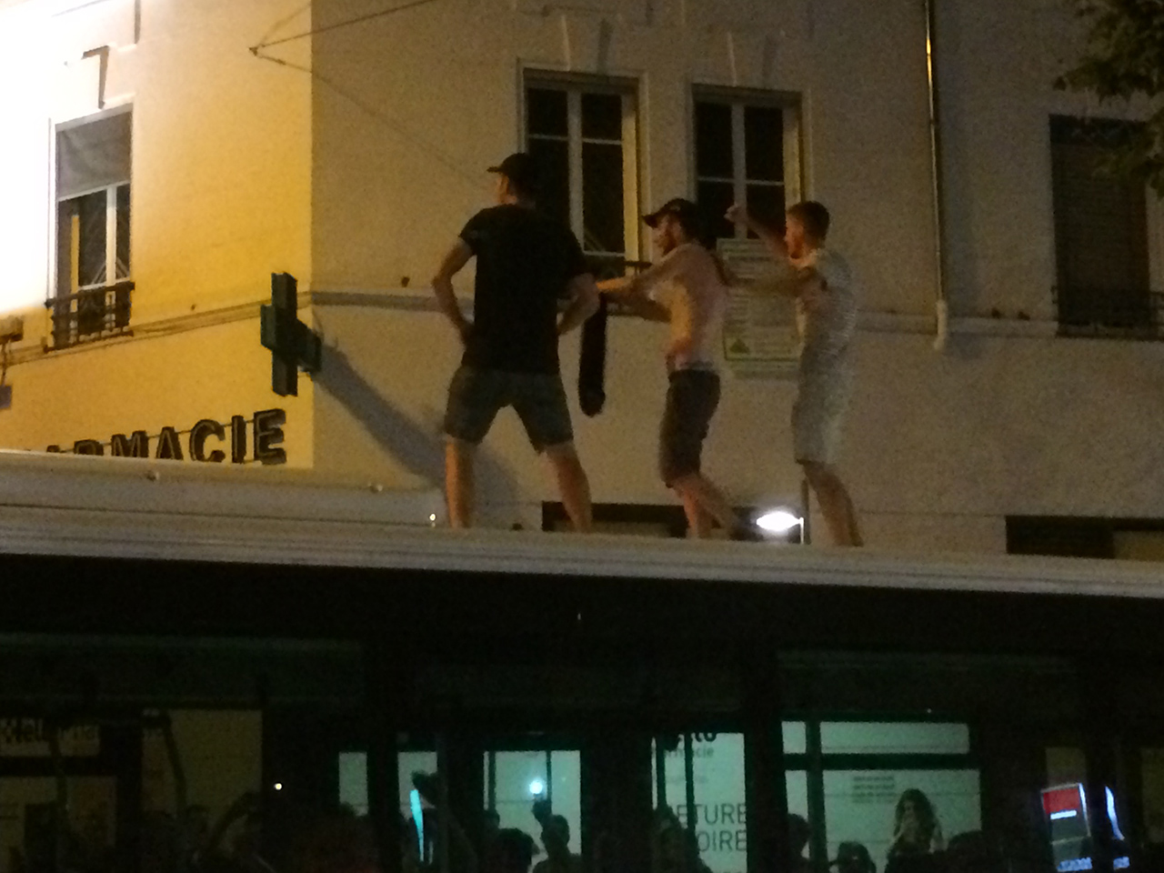 Signaler Répondrec est ça faire la fête ?? monter sur un bus et danser / uriner ??