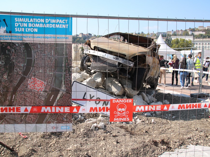 C’est l’organisation non gouvernementale Handicap International qui organise l’évènement. Le but est de créer une pyramide de chaussures pour sensibiliser les Lyonnais aux bombardements civils en zone de guerre. Les portraits de certaines victimes seront exposés à côté de la pyramide. L’ONG dénombre 90 victimes par jour, dont 92% de civils. Les pays les plus touchés par ces bombardements sont le Yémen, l’Irak, la Syrie, ou encore l’Ukraine. Il rappelle qu’au Yémen, 16 000 raids aériens ont touché la population civile depuis 2015.