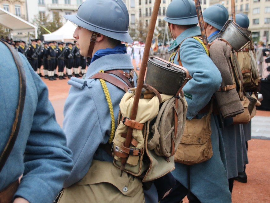 A l'occasion du centenaire de l'armistice de la Première Guerre Mondiale, un hommage était rendu par de nombreux jeunes, entourés du maire de Lyon Gérard Collomb.
