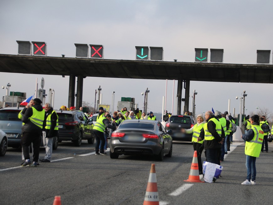 De rares rassemblements étaient organisés dans la matinée, notamment sur le parking d’Ikea à Saint-Priest. Les gilets jaunes ont ensuite bifurqué sur le péage de Saint-Quentin-Fallavier, là aussi pour permettre aux automobilistes de passer sans payer.
