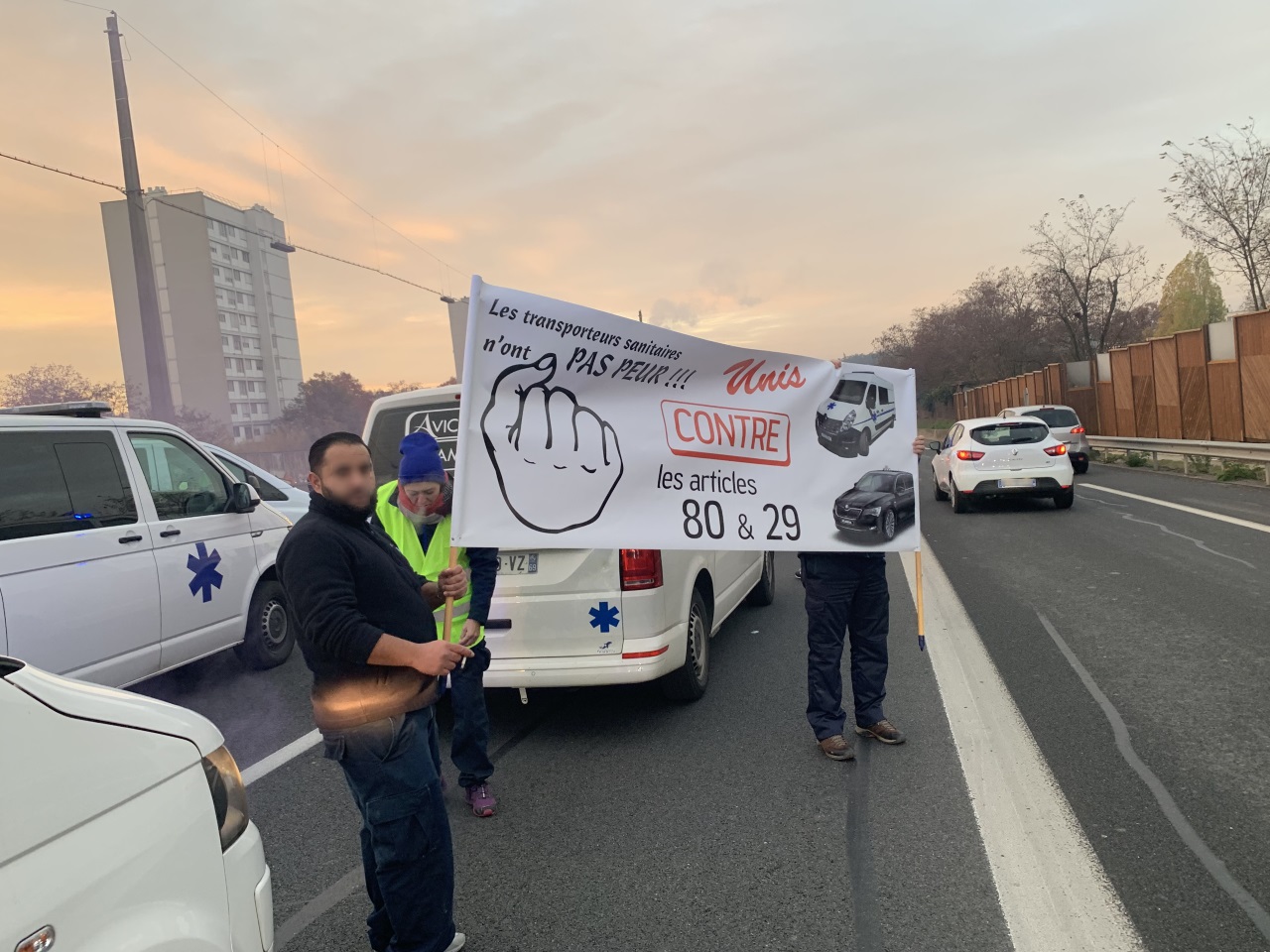 Les ambulanciers manifestent une nouvelle fois contre l’entrée en vigueur de l’article 80 de la loi de financement de la sécurité sociale.