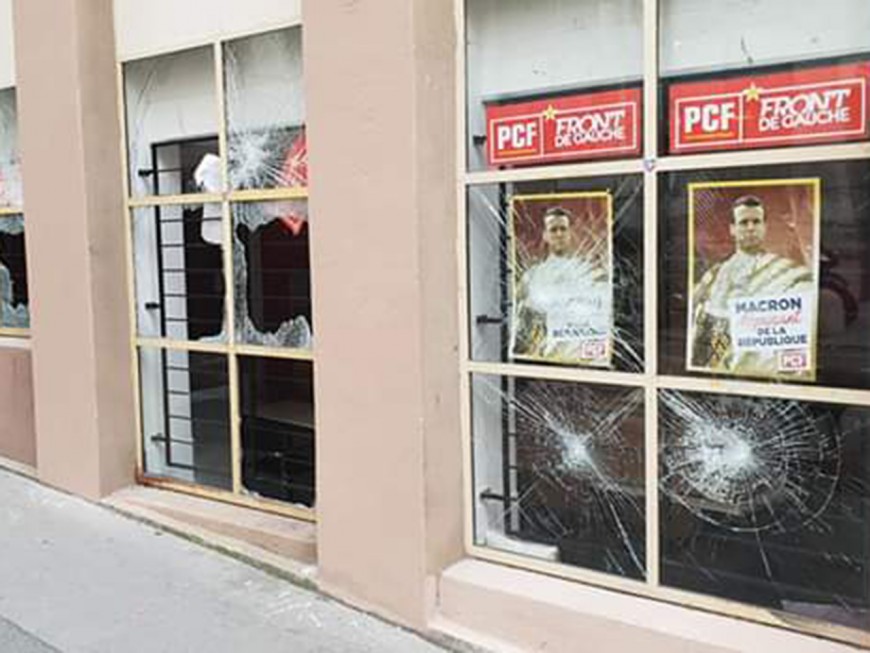Dans la nuit de mercredi à jeudi, un "groupe d’individus encapuchonnés et munis de battes de baseball" se sont attaqués à la devanture selon le communiqué du PCF.